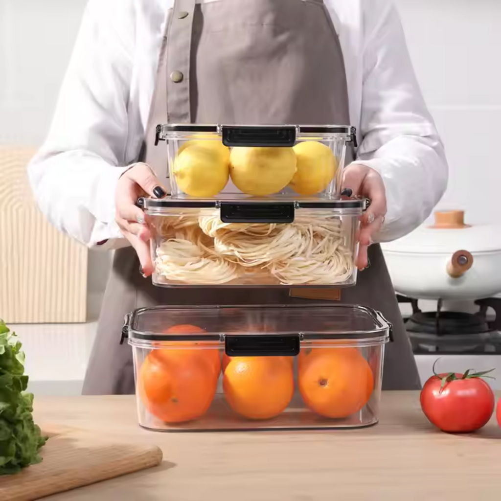 Características: Tampa hermética, empilhável e fácil de limpar